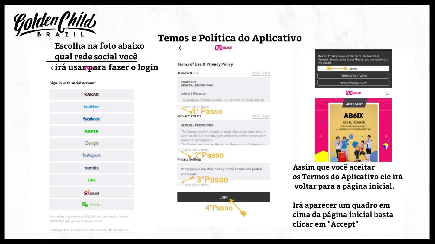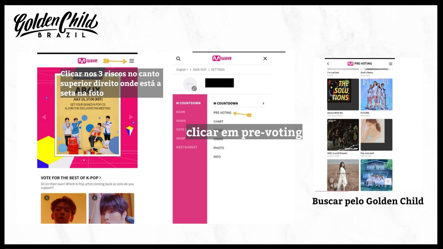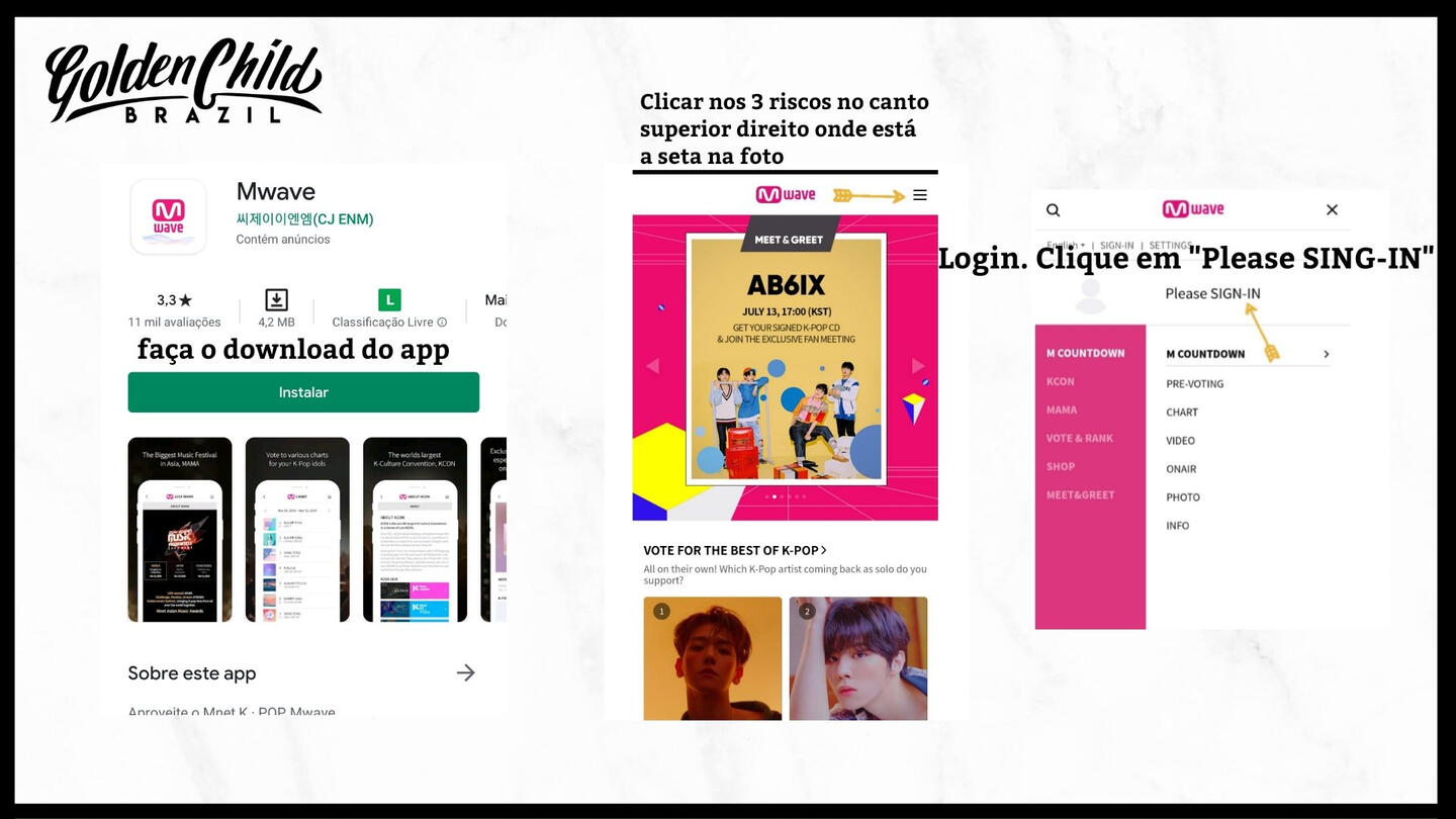 O MWAVE é um aplicativo (disponível para computador, Android e iOS) para a votação do M! Countdown. Siga as imagens abaixo para a votação.