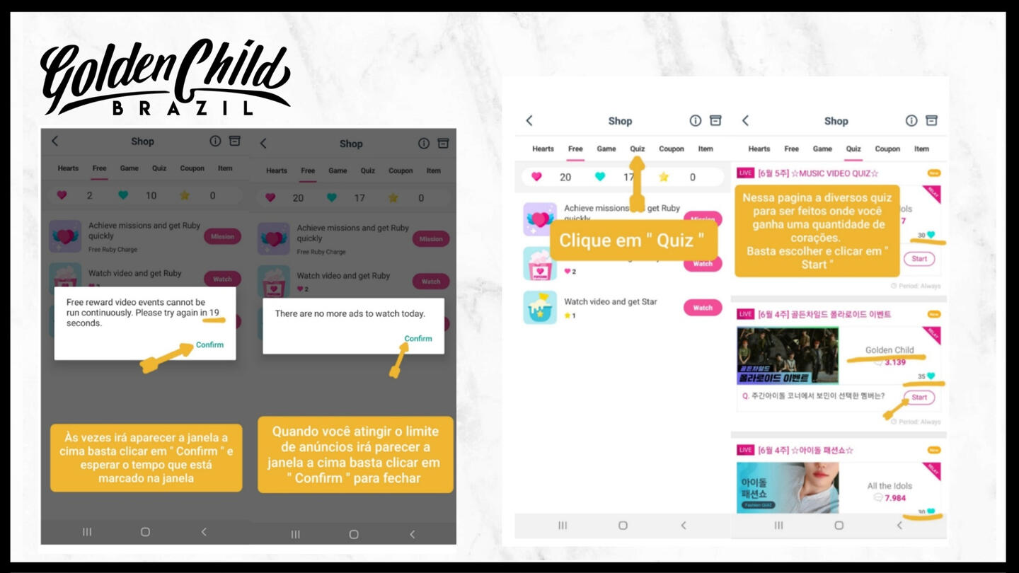 Os tutoriais abaixo são para ajudar o Golden Child em todos os seus futuros comebacks. Anotem tudo direitinho e vamos ajudar os nossos meninos!!! ~ ^^