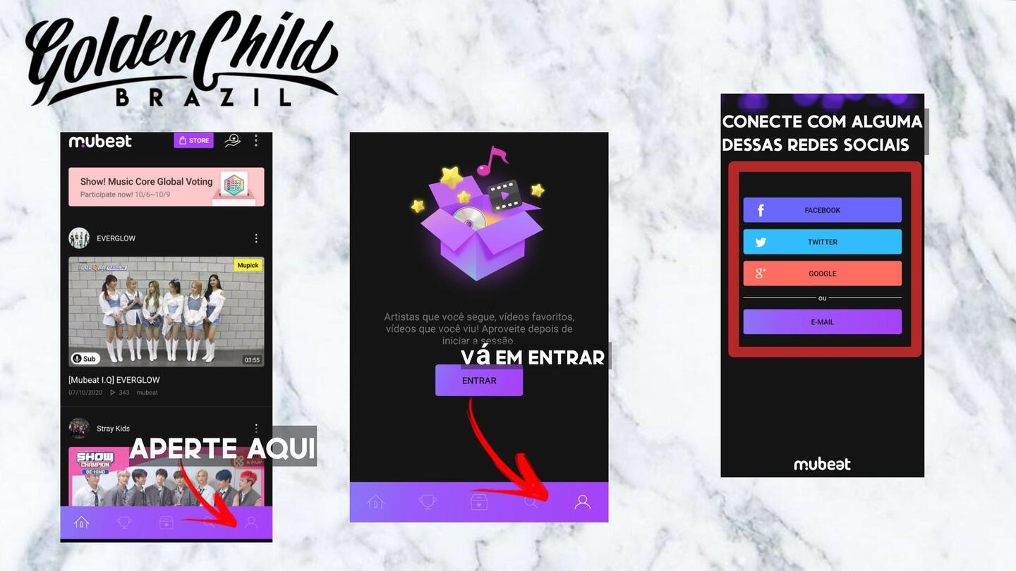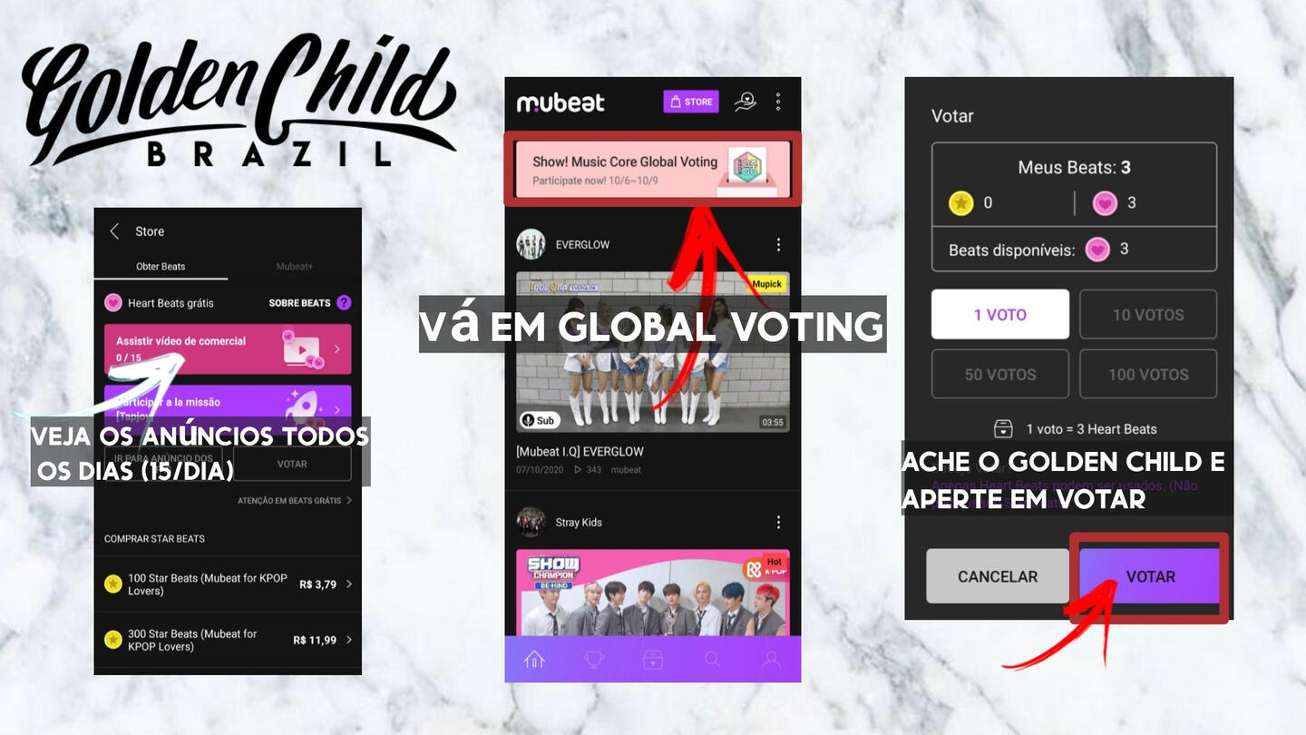 O Mubeat é um aplicativo (disponível para ambos Android e iOS) para a votação do Music Core. Siga as imagens abaixo para a votação.