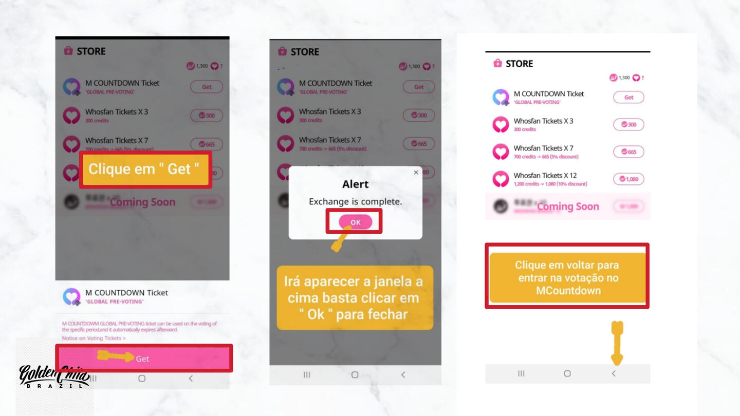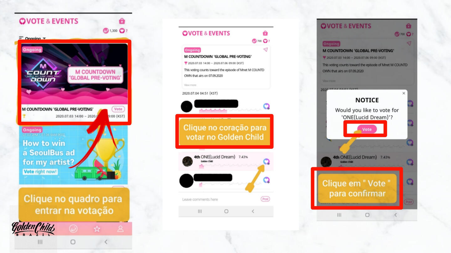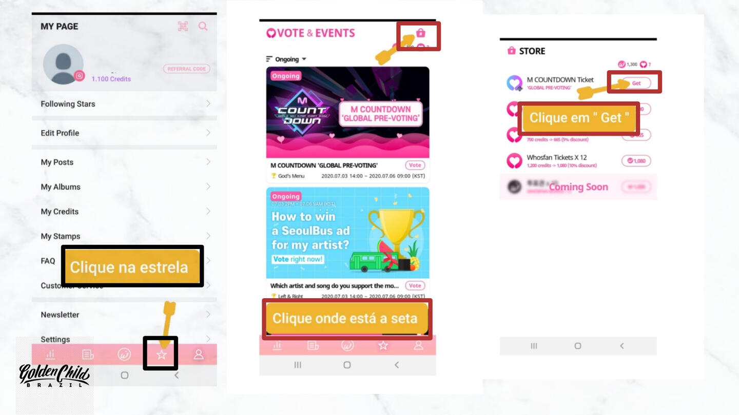 O MWAVE é um aplicativo (disponível para computador, Android e iOS) para a votação do M! Countdown. Siga as imagens abaixo para a votação.